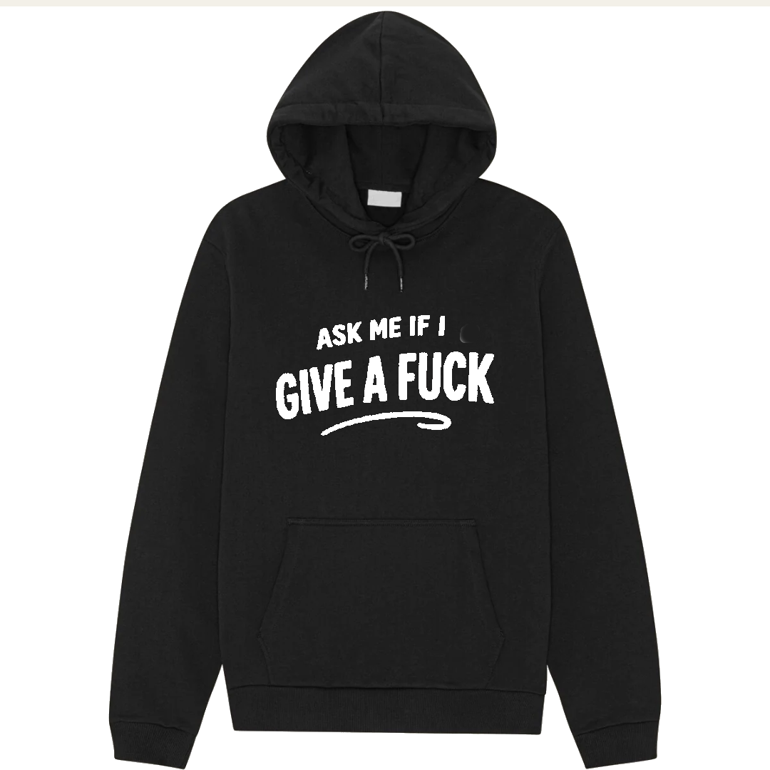 “Ask Me If I Give A Fuck” Hettegenser Noen ganger er det bare greit å spare folk for gjettingen.Svaret? Nei. Rett frem, null filter – og overraskende befriende.