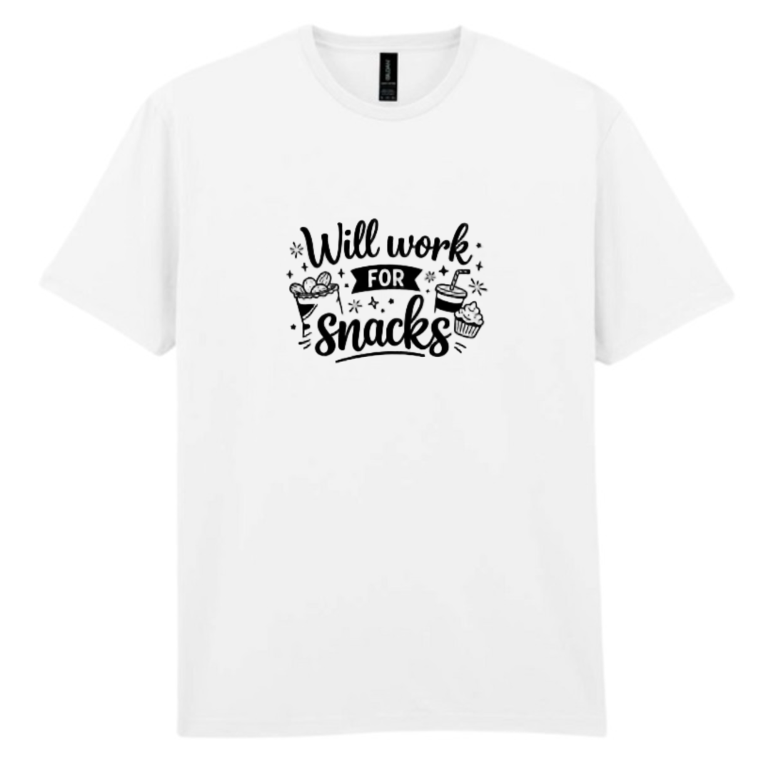 Denne t-skjorta er for alle som vet at riktig belønning kan få hvem som helst i gang. Med et søtt og humoristisk design som kombinerer tekst og små illustrasjoner, er dette et plagg som garantert får fram smil – og kanskje noen tilbud om snacks.